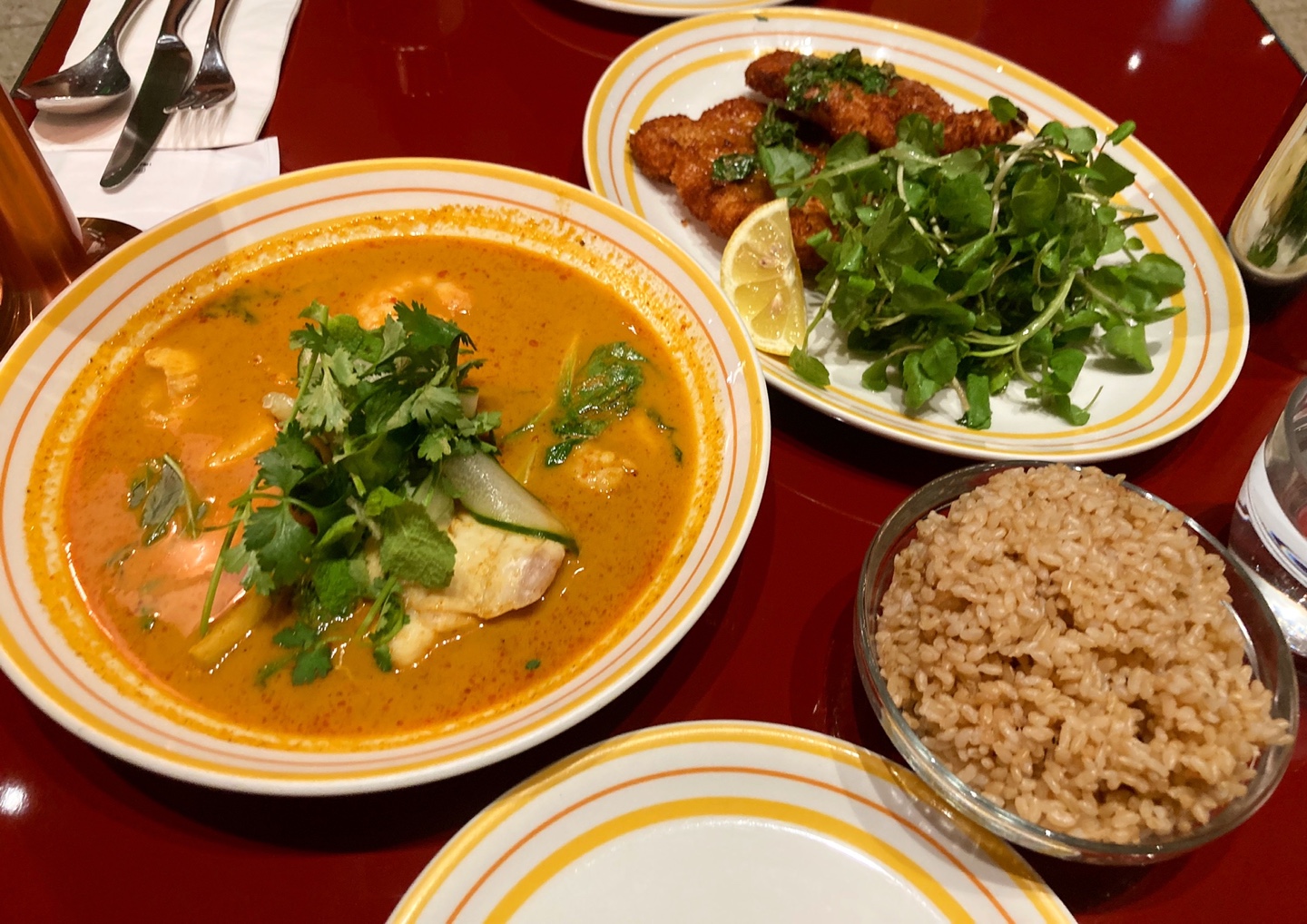 저희는 이날 새우 흰살 생선 코코넛 커리와 제주 흑돼지 슈니첼, 클라우드 생맥주를 주문하였습니다. 커리에는 메뉴판에 표기된 것과 같이 고수가 들어 있으니 취향에 맞게 주문하실 때 참고하시면 좋을 것 같습니다.
