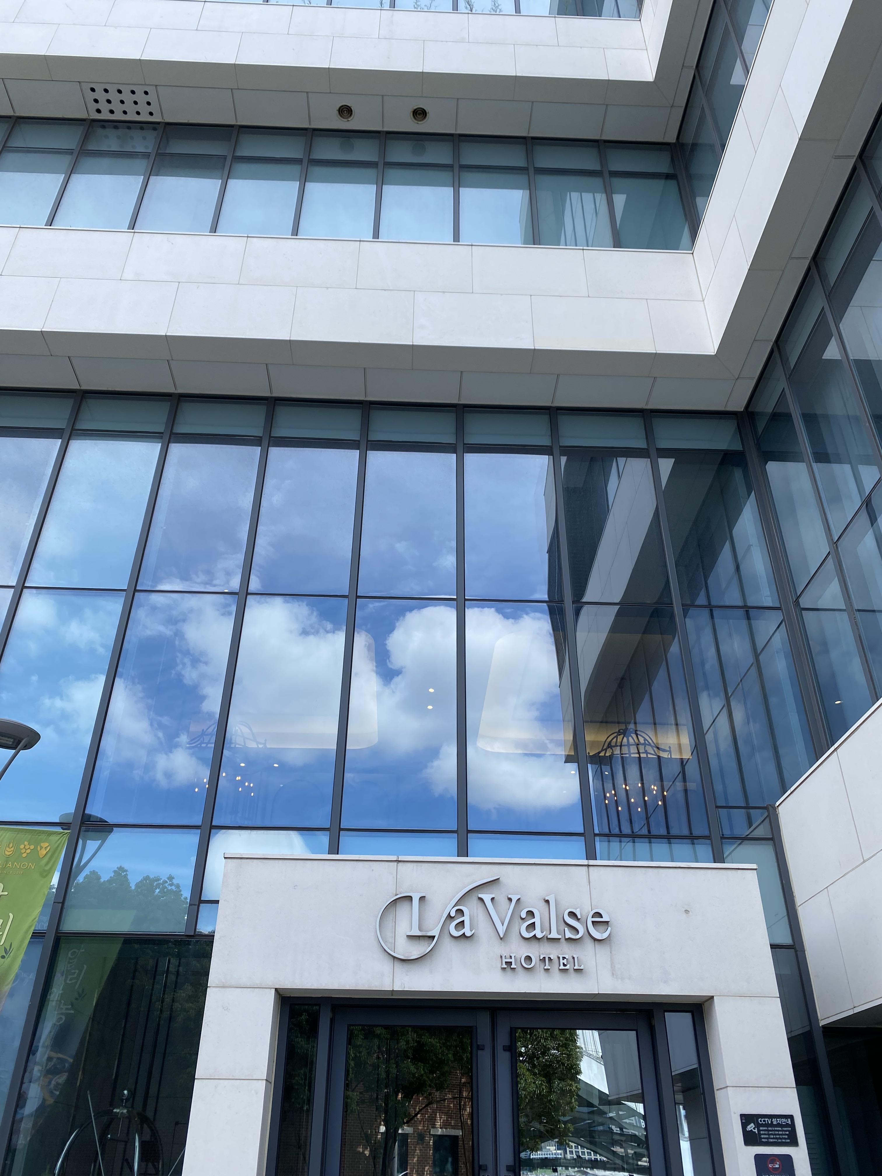 <라발스호텔>의 입구와 로비는 넓거나 화려하지는 않으나 여행에 설렘을 더하기에 충분했고, 프런트 직원분들도 여느 호텔과 같이 친절하였습니다. 호텔 사용에 대하여 안내사항을 전달받고 저희는 룸으로 이동하였습니다. 저희가 이날 숙박한 방은 '스탠더드 오션뷰'이며, 야놀자 어플을 통하여 예약하였습니다. 이 호텔의 시그니처인 코너룸은 오직 <라발스호텔>의 홈페이지를 통하여만 예약이 가능합니다. 저희가 예약할 때에는 코너룸의 존재를 몰라 스탠더드 오션뷰로 예약하였으나, 오션뷰가 괜찮은 호텔이라 코너룸을 예약하지 않은 것이 조금 아쉽게 느껴지기도 했습니다.