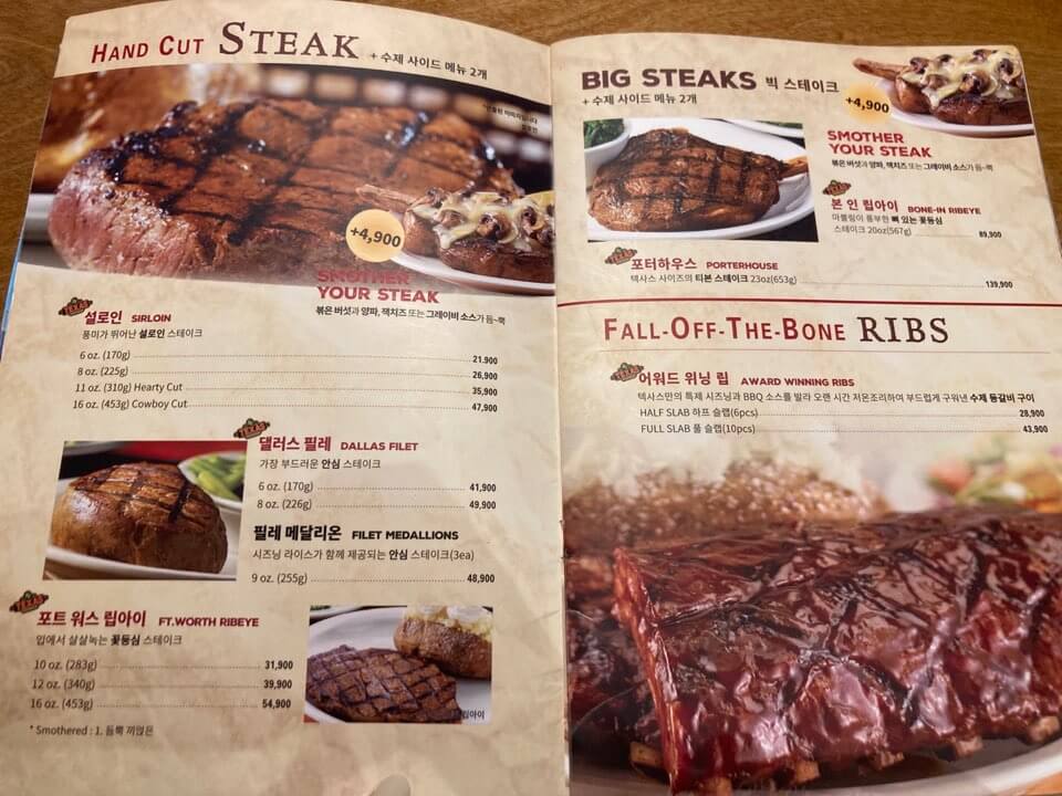 <텍사스로드하우스>의 전반적인 인테리어와 분위기 메뉴까지 전성기의 <아웃백스테이크하우스>와 유사하다는 느낌이 강합니다. 아웃백이 호주의 교외 지역을 콘셉트로 했다면, <텍사스로드하우스>는 미국 서부 지역을 인테리어에 녹여내고 싶어 했다는 생각이 들지만 그 둘의 차이점을 느끼지 못하는 저로서는 그저 유사하다밖에 표현할 방법이 없어 아쉽습니다.
