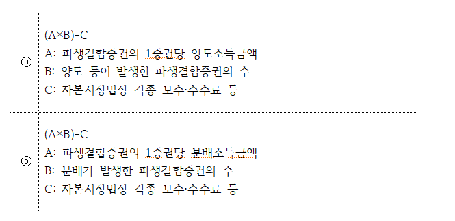 ⓐ 파생결합증권 양도소득금액 + ⓑ 파생결합증권 분배소득금액