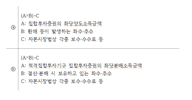 ⓐ 집합투자증권 양도소득금액 + ⓑ 적격집합투자기구 분배소득금액